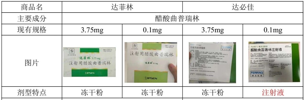 两者均涵盖短效(0.1mg,日制剂)与长效(3.75mg,月制剂)两种规格。